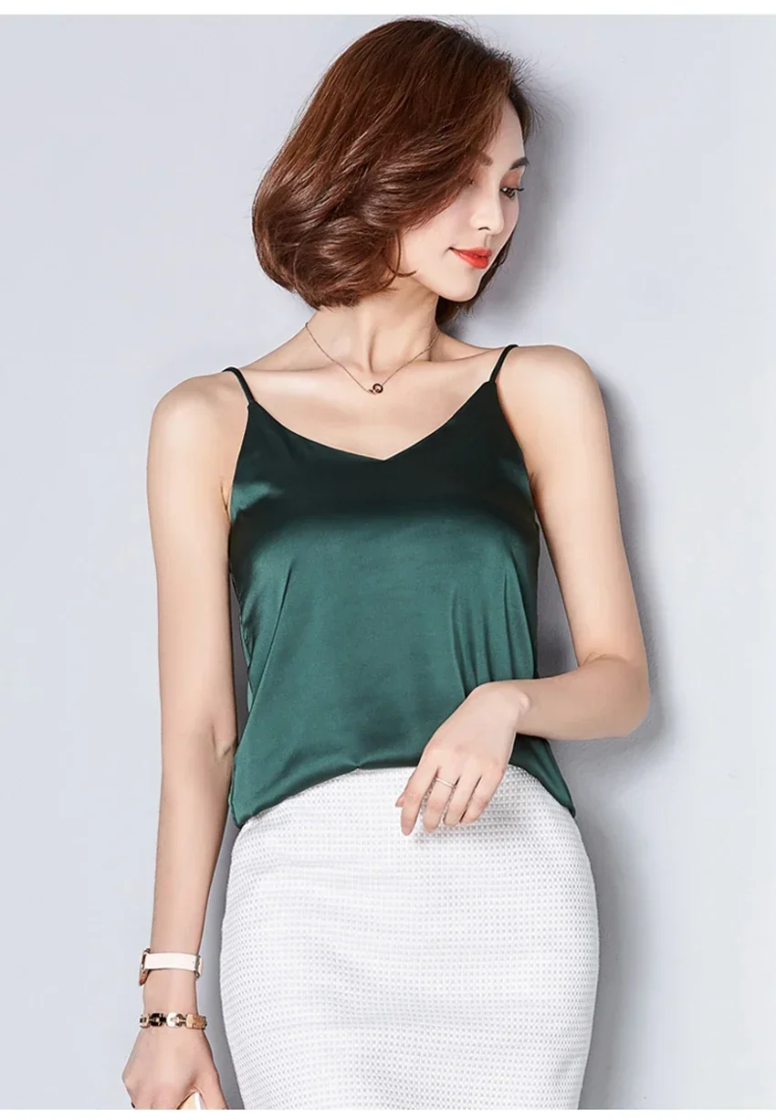 White Basic Women Silk-Like Satin Tops Vest Summer Sexy Camis Tank For Ladies Strappy Camisole Top Shirts Grunge Femme Clothes